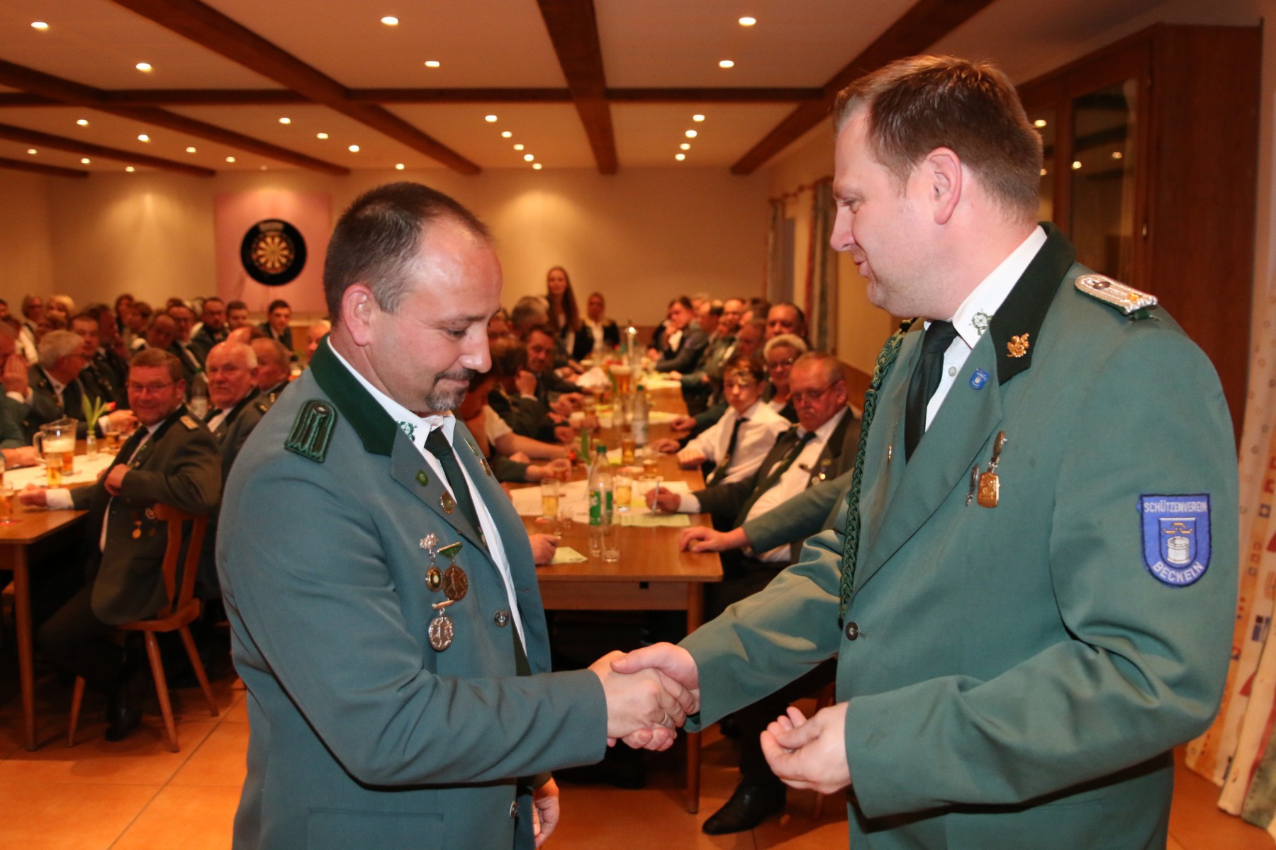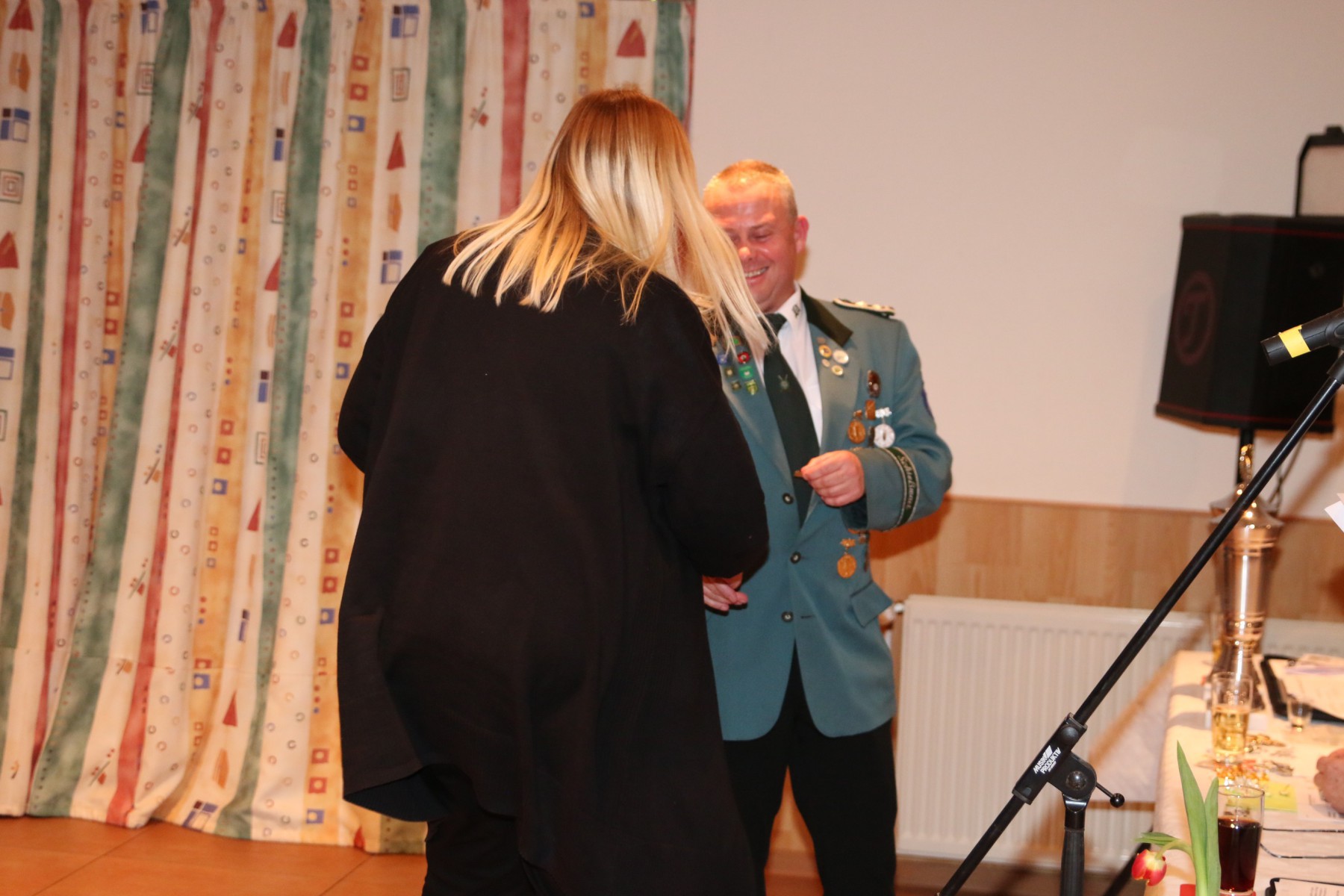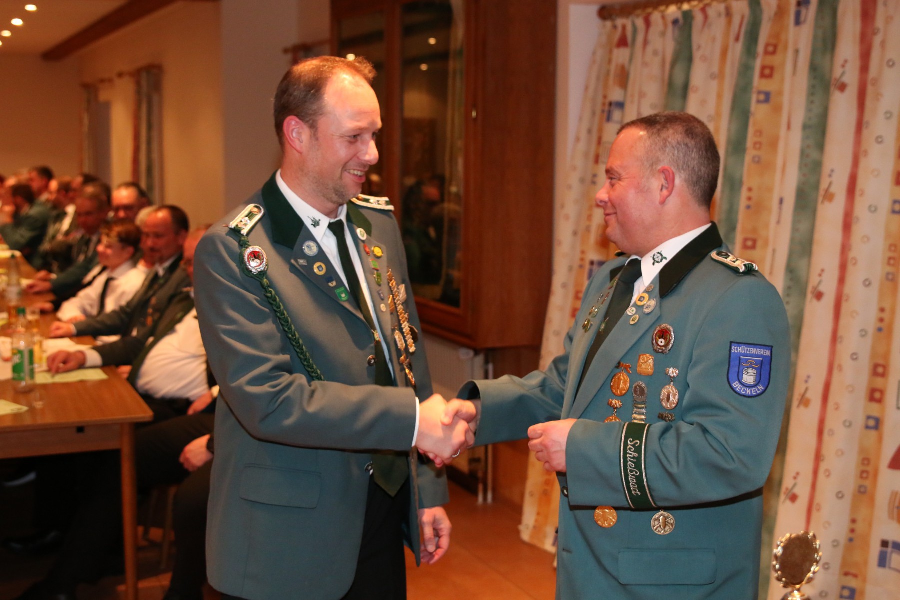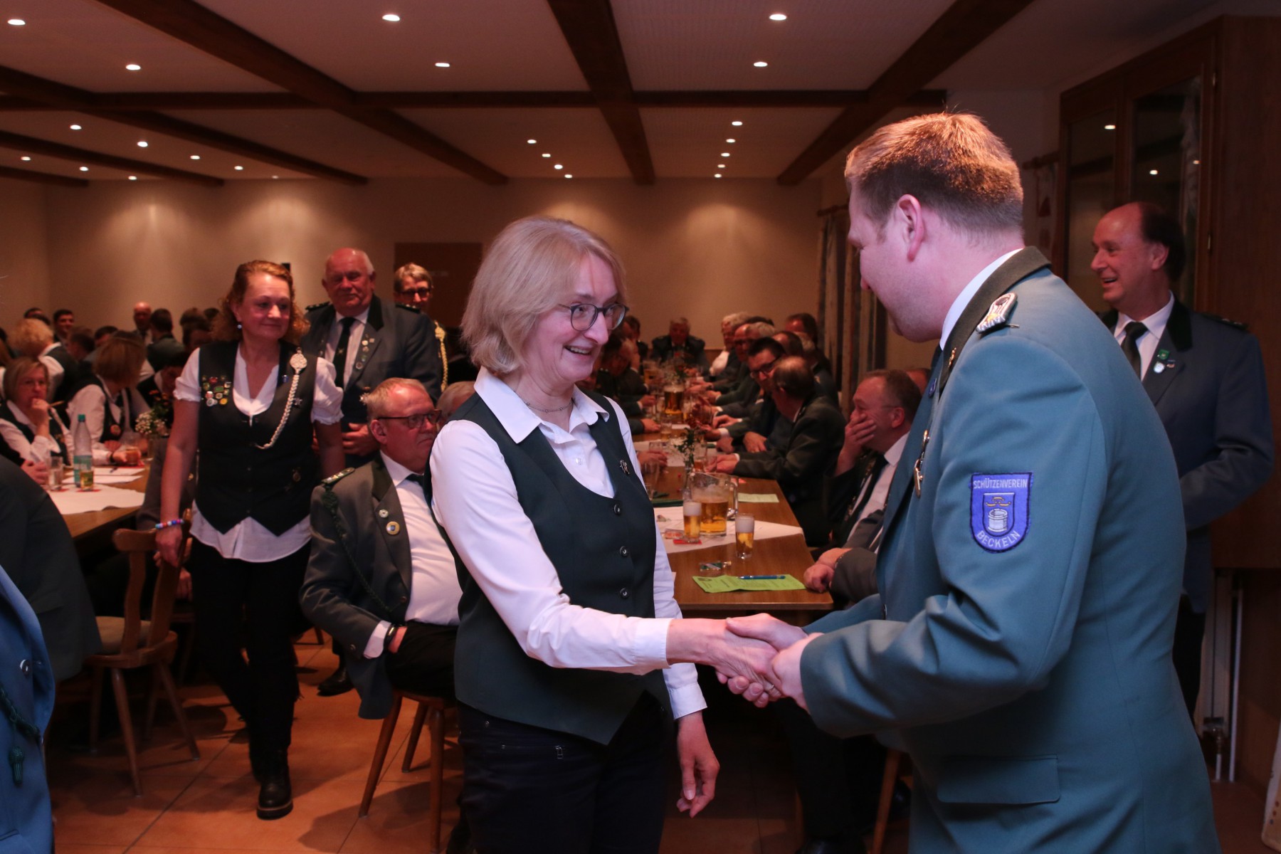Die Überraschung des Abends folgte, als Hendrik Wolle das Mikrofon ergriff und seinen langjährigen Vorsitzenden, Manfred Kück, unter tosendem Applaus zum Oberst beförderte, als Anerkennung für seine beeindruckende 25-jährige Tätigkeit als erster Vorsitzender.