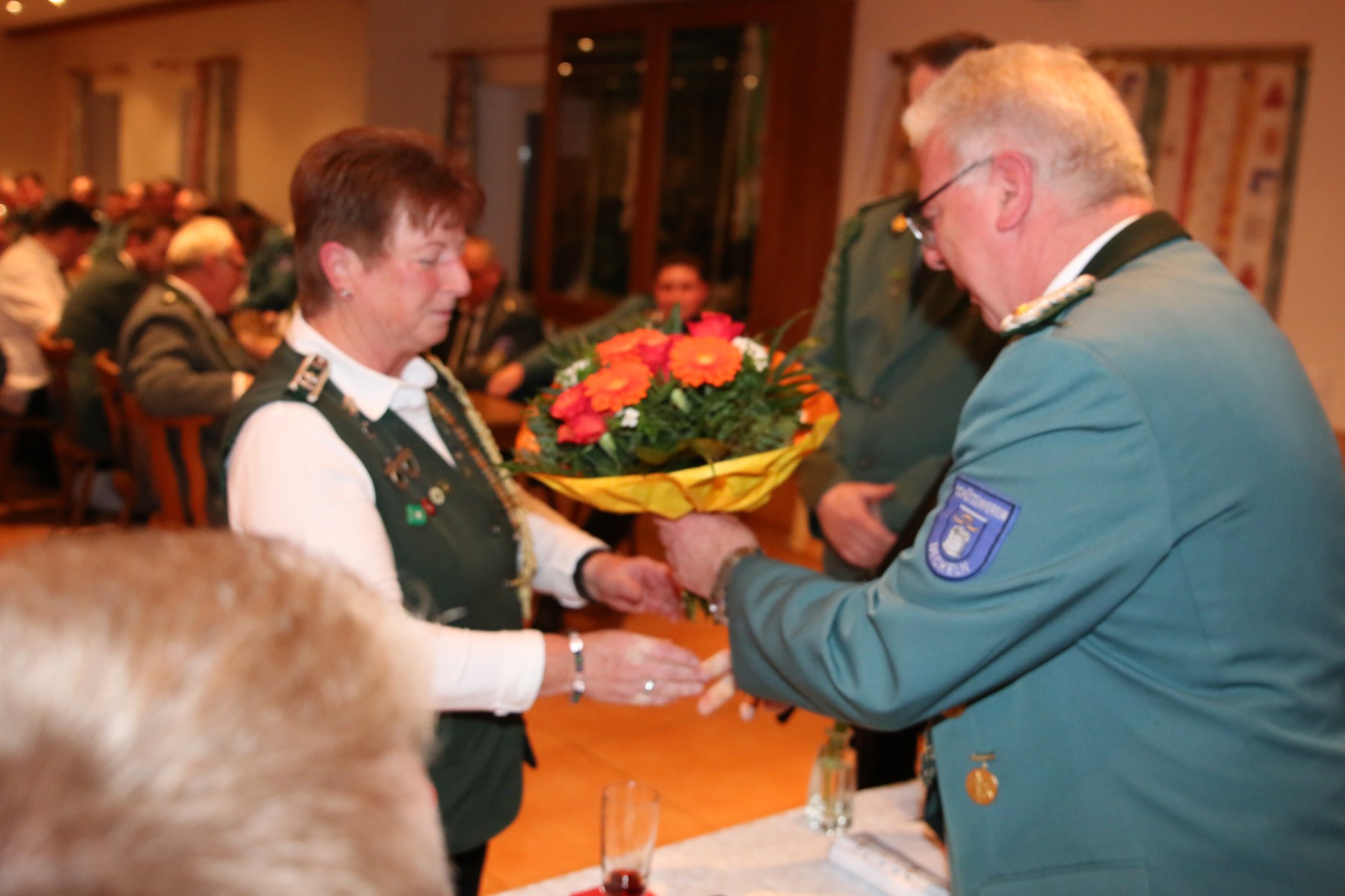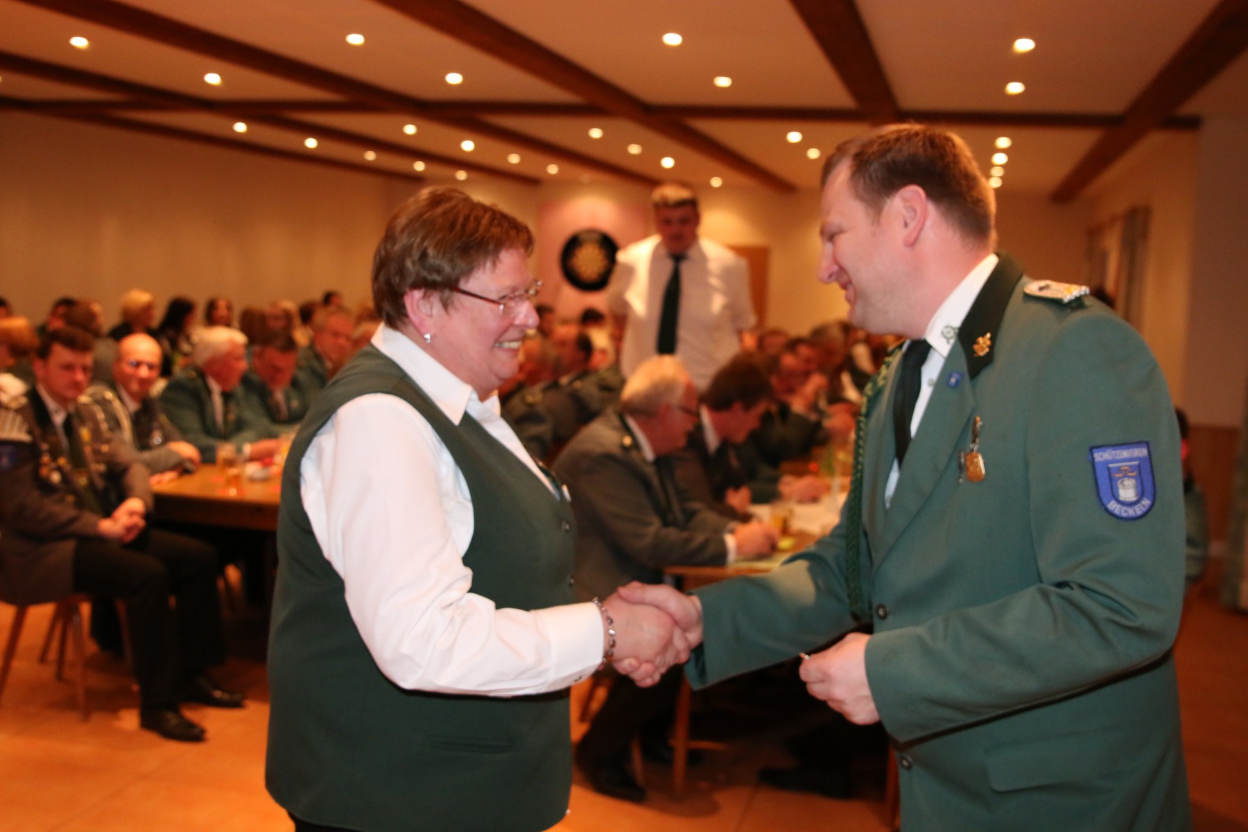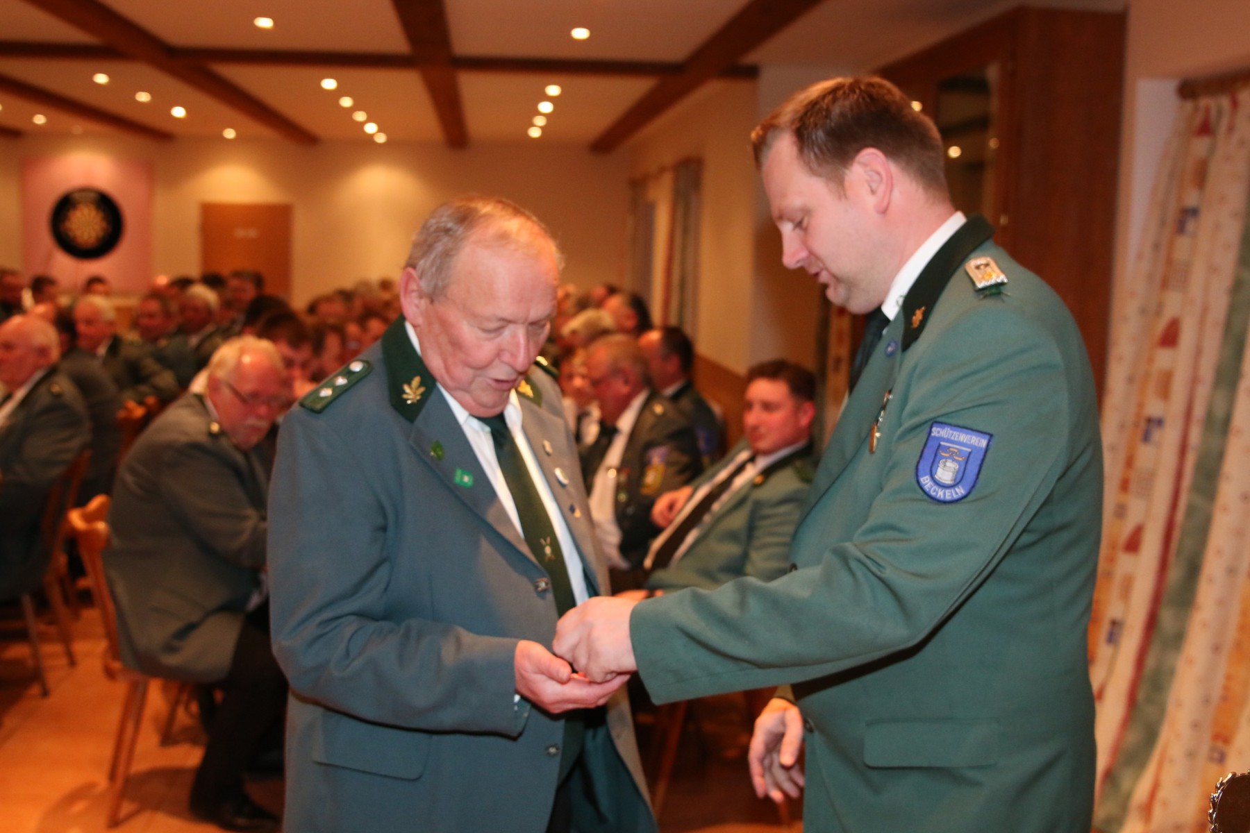 Die Überraschung des Abends folgte, als Hendrik Wolle das Mikrofon ergriff und seinen langjährigen Vorsitzenden, Manfred Kück, unter tosendem Applaus zum Oberst beförderte, als Anerkennung für seine beeindruckende 25-jährige Tätigkeit als erster Vorsitzender.