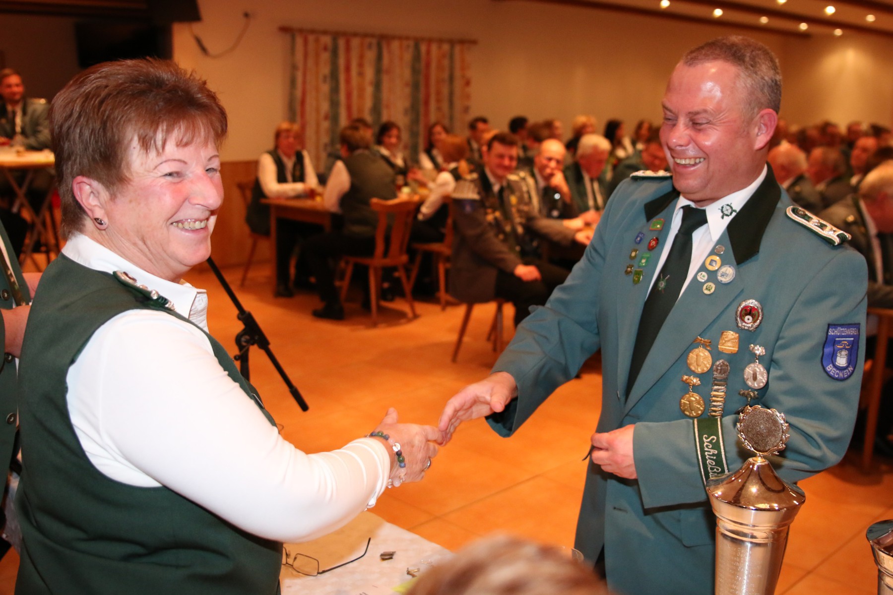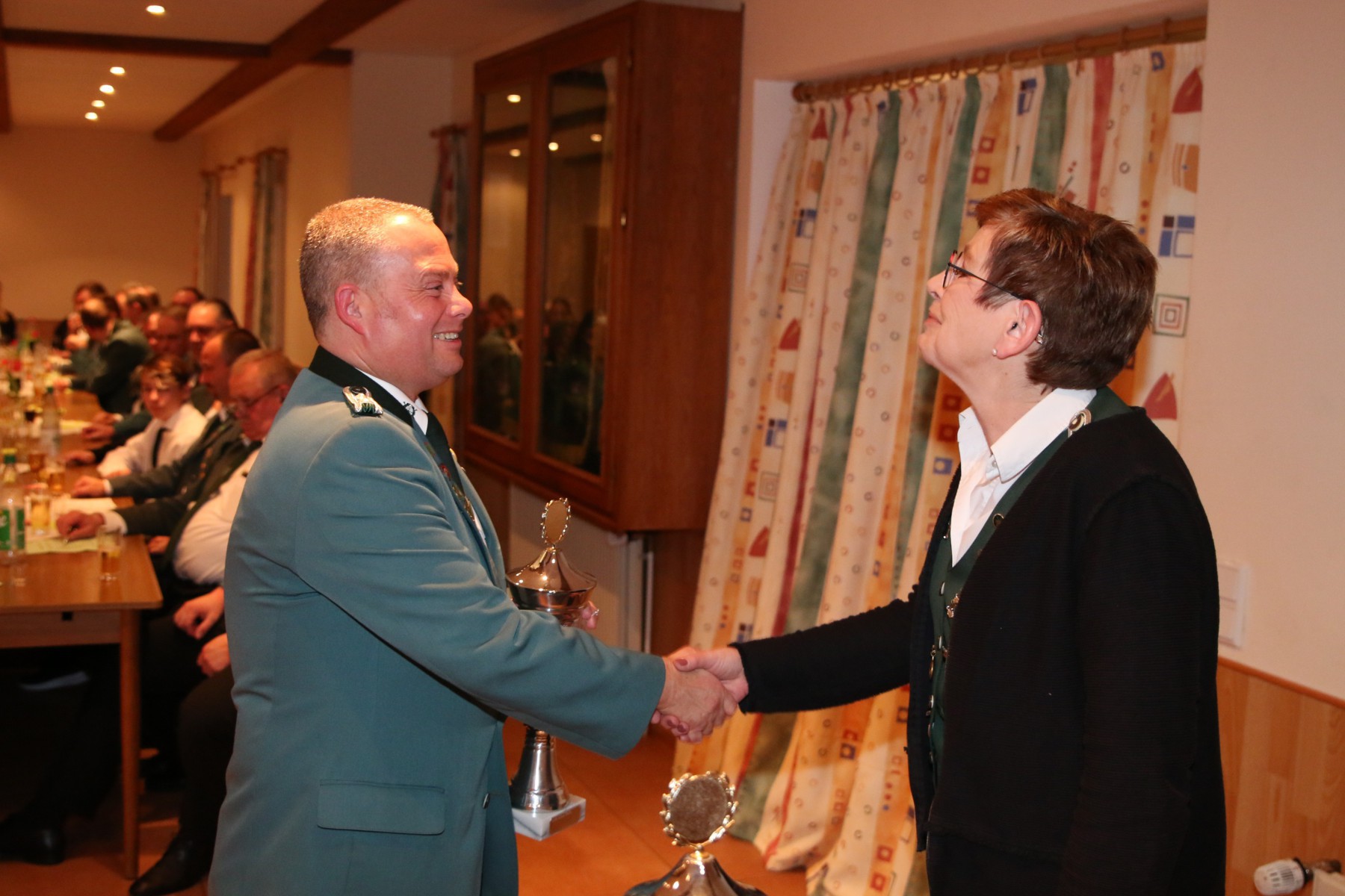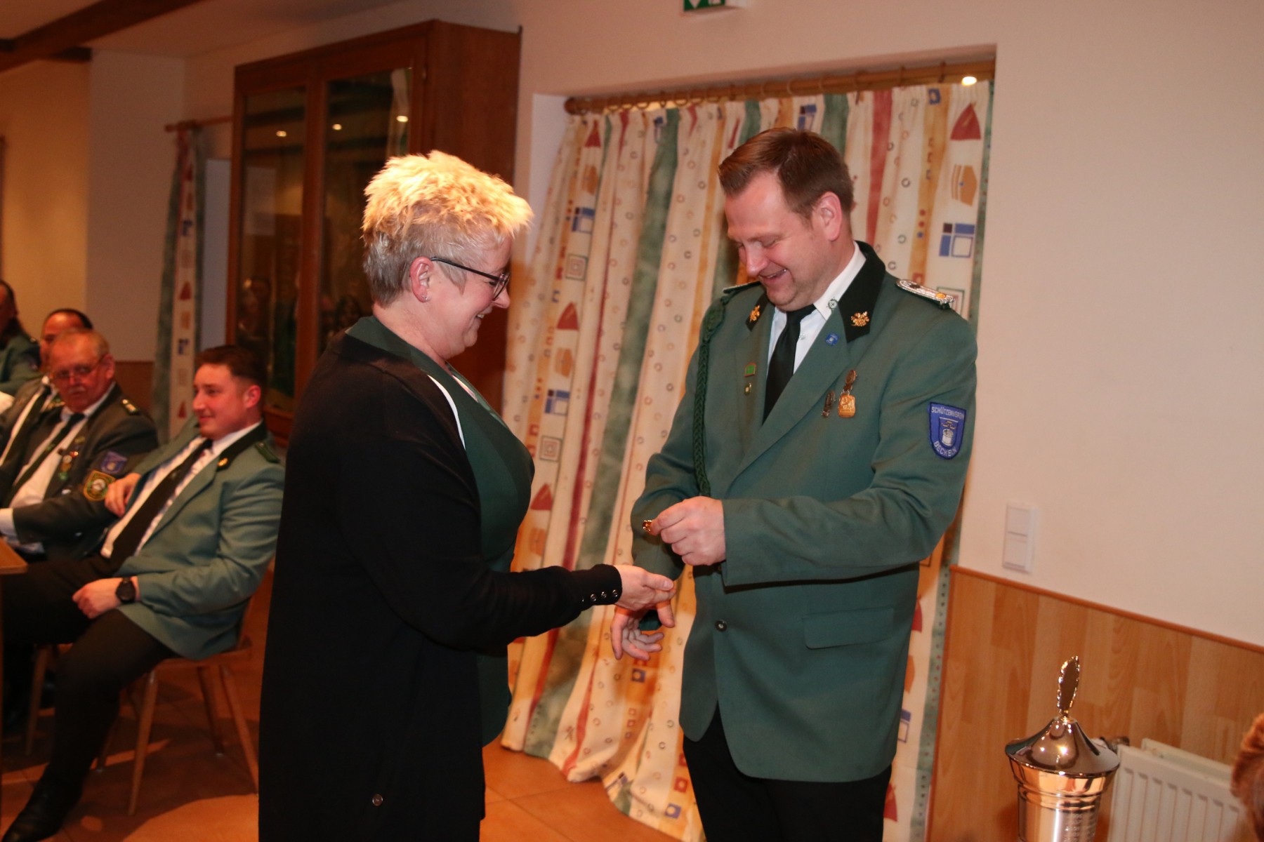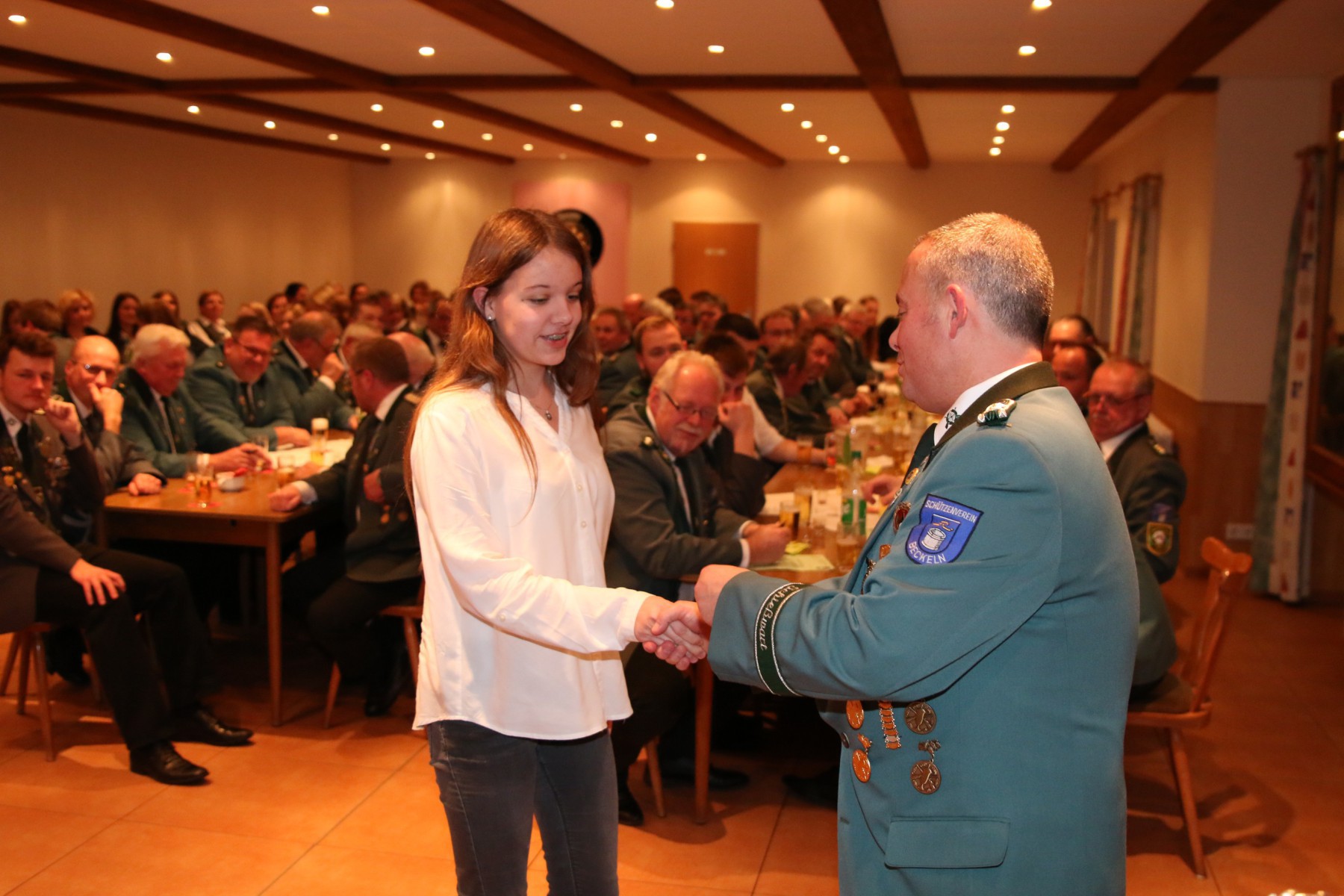 Die Überraschung des Abends folgte, als Hendrik Wolle das Mikrofon ergriff und seinen langjährigen Vorsitzenden, Manfred Kück, unter tosendem Applaus zum Oberst beförderte, als Anerkennung für seine beeindruckende 25-jährige Tätigkeit als erster Vorsitzender.